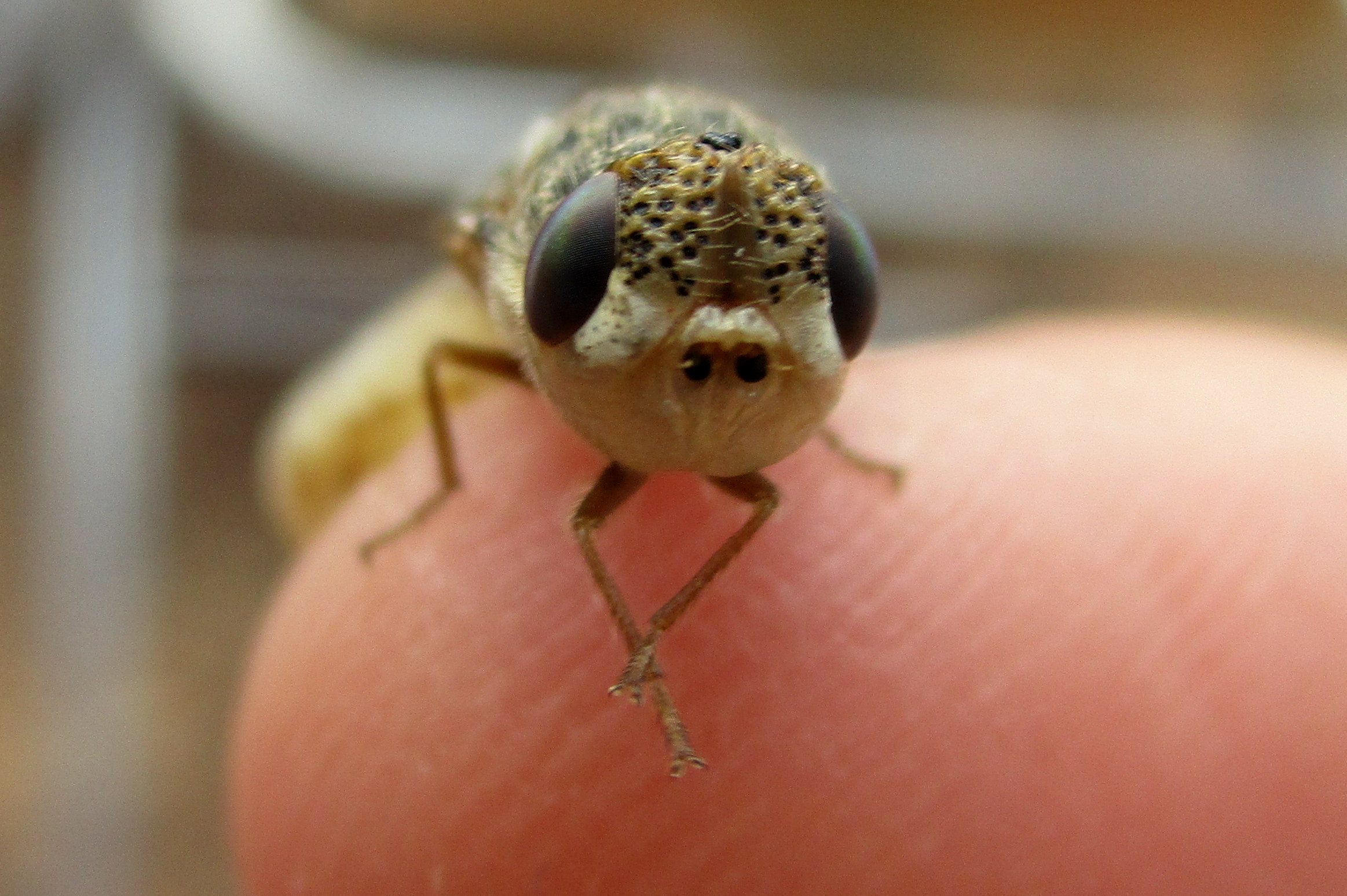 Ich schlief in der Nacht unruhig und träumte viel. Es hatte keinen Regen gegeben, und ich half Markus beim Wiederaufbau. Als Markus weg war, besuchte mich eine „richtige“ Zikade, etwas kleiner als die Mittelmeer-Zikaden. Sie flog erst vor mir und blieb dann mindestens 15 Minuten auf meinem Finger, ließ sich fotografieren, schaute mich an, putzte sich und schaute dann auch Markus an, als er kam...