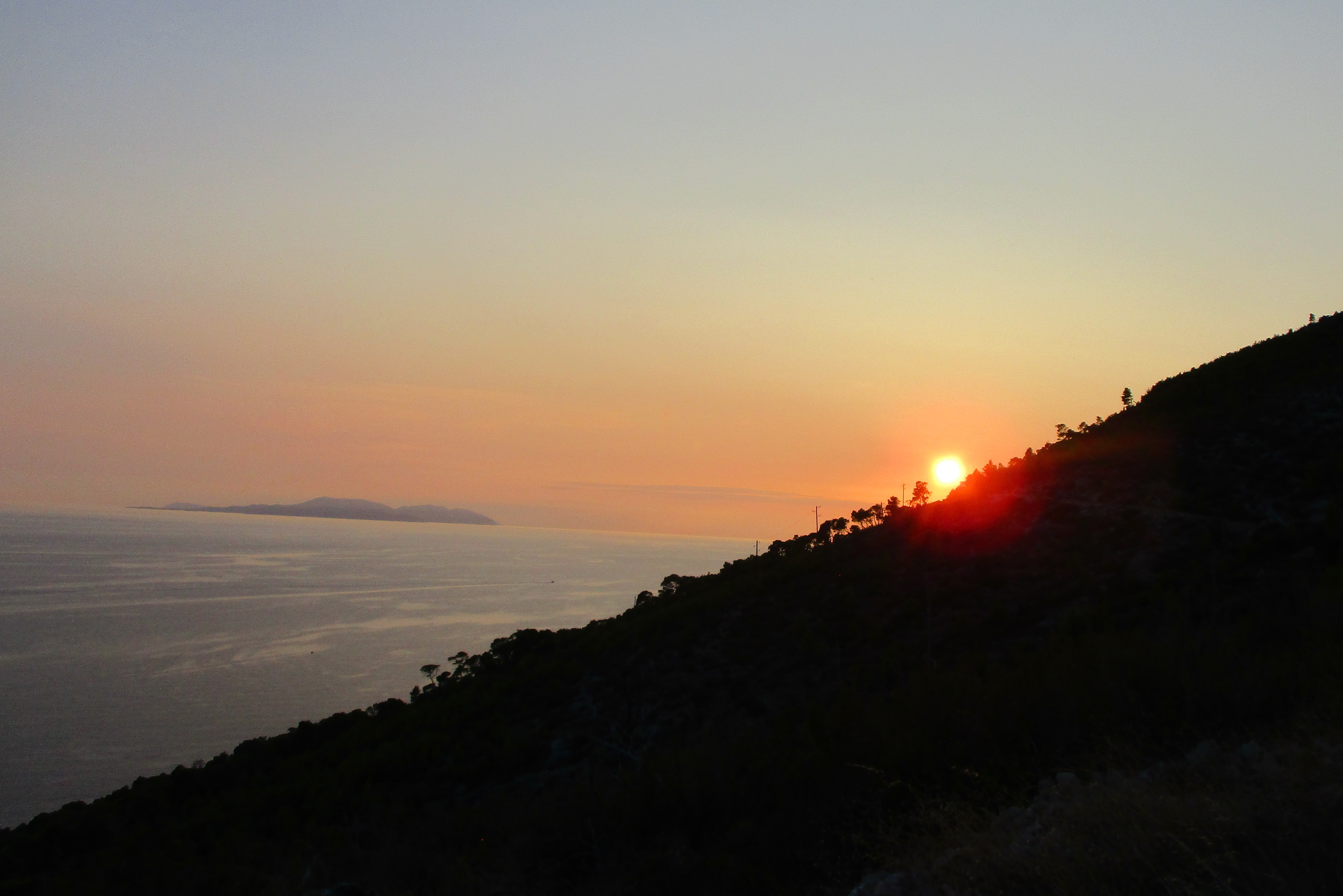 Am späten Nachmittag fahren wir zur Straße hoch, parken dort und laufen dann den Berg hoch zum „verlassenen“ Dorf – größtenteils nackt - und weiter bis zu einem Aussichtspunkt über dem Meer, wo wir den Sonnenuntergang beobachten und den Blick auf´s weite Meer genießen...Ich lasse meinen Schmerz fließen in den Armen von Markus...Eine Schlange begegnet uns – Häutung ! Als wir wieder am Platz sind, mache ich Spaghetti mit Sataraš und Tomatensoße...Ich kann endlich mal wieder warm duschen...Behandle den Zahn mit Schwedenbitter, Schmerzen werden dadurch stärker...Markus macht dann den Tuchbehang vor die Mupfel und ich schlafe wieder innen...Zeitweise starke Zahnschmerzen kurz in der Nacht, schlafe aber trotzdem...Tag 13 Freitag – Tag 9 Hvar